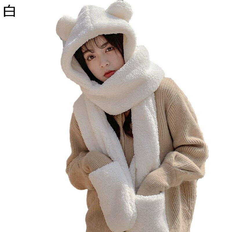 マフラー 3in1 帽子 レディース 手袋 一体型 アニマル帽子 可愛い 萌え萌え 秋冬物 ぽかぽか 防風 多機...