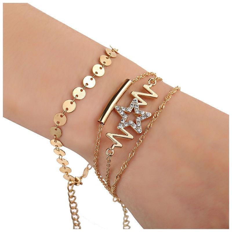 ゴールドカラーのシンプルなブレスレット4点セットです。【サイズについて】画像をご参照下さい。【素材について】合金【補足説明】画像をご参照下さい。[詳細を見る]