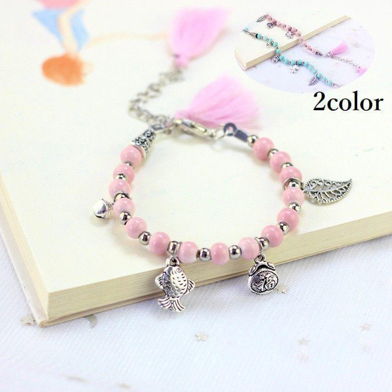 セラミック製のビーズに縁起の良い鯛などのモチーフがあしらわれたブレスレットです。ビーズと同じカラーのタッセルが揺れてオシャレ♪【サイズについて】画像をご参照ください。【素材について】セラミック他[詳細を見る]