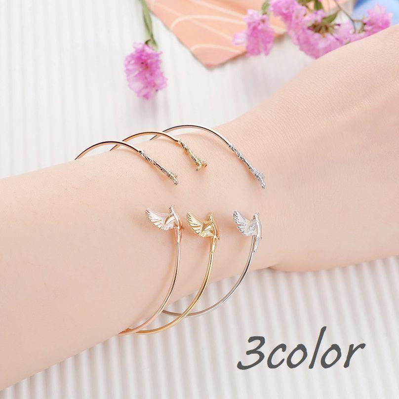 レディース用のブレスレットです。鳥が木の枝に止まろうとしているようなデザインがおしゃれ。シンプルで上品な雰囲気なので、どんなコーディネートにも合わせやすいです♪【サイズについて】外径:約 6×5.7cmリング太さ:約 0.2cm【素材について】合金[詳細を見る]