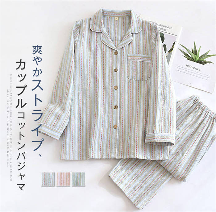 width="100%"> 着脱しやすく体温調節も簡単な前開きデザイン ボタンを開け閉めするだけでさっと着替えられる前開きタイプ。朝晩の気温差にも対応しやすく、羽織るだけでガウンのようにも使える便利な一着です。 肌に優しい綿100%の快適素材 通気性・吸水性に優れ、静電気が起きにくいコットン素材。夏は涼しく冬は暖かく、一年を通して快適な着心地を保ちます。洗濯にも強く、長く愛用できる丈夫さも魅力です。 二人の時間をお...[詳細を見る]
