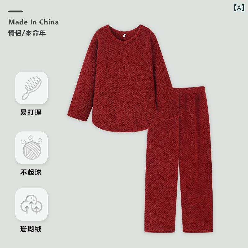 赤い カップルの パジャマの 女性の 冬の サンゴの フランネルの 新年の 軍服の お祝いの 結婚の 男性の...