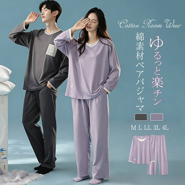 パジャマ メンズ レディース 春秋 綿100% pareja 上下セット ペアルック 夫婦 カップル 前開き 長袖 ルームウェア 部屋着 寝巻き シンプル 無地 襟付き M L XL XXL XXXL[詳細を見る]